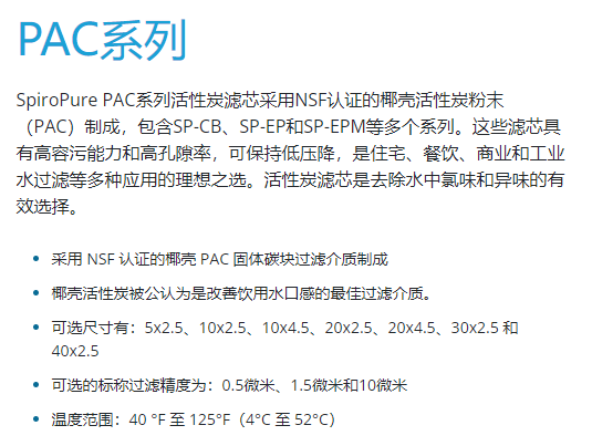 spiropure 实心块状活性炭过滤器PAC系列